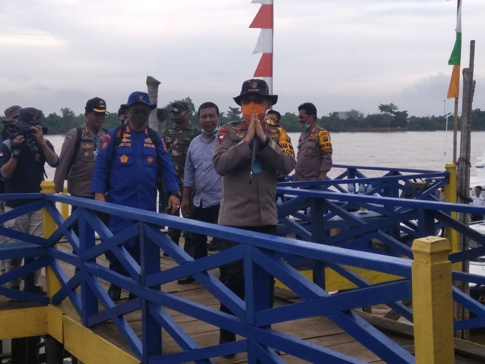 Kunjungan Bapak Kapolda Jambi berserta Bupati Kab Tanjabtim ke Posko Satgas Covid 19 di Perairan Muara Sabak, Bapak Kapolda Jambi Selaku wakil gugus satgas covid 19 propinsi Jambi melakukan kunjungan serta memantau kegiatan Posko Satgas Covid 19 di Perairan Muara Sabak yang melibatkan Lintas Sektor