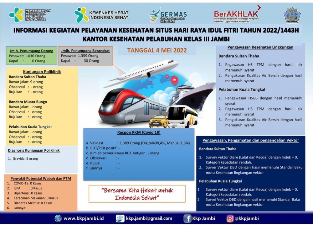 Kegiatan Pelayanan Kesehatan Situs Hari Raya Idul Fitri Tahun 2022/ 1443 H, Kantor Kesehatan Pelabuhan Kelas III Jambi, Tanggal 04 Mei 2022.