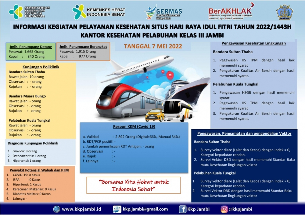 Pelayanan Kesehatan Situs Hari Raya Idul Fitri tahun 2022/1443 H, Kantor Kesehatan Pelabuhan Kelas III Jambi, Tanggal 07 Mei 2022