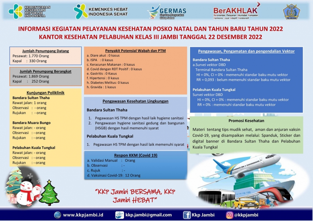 Kegiatan Pelayanan Kesehatan dalam rangka Posko Natal dan Tahun Baru, Kantor Kesehatan Pelabunan Kelas III Jambi tanggal 22 Desember 2022