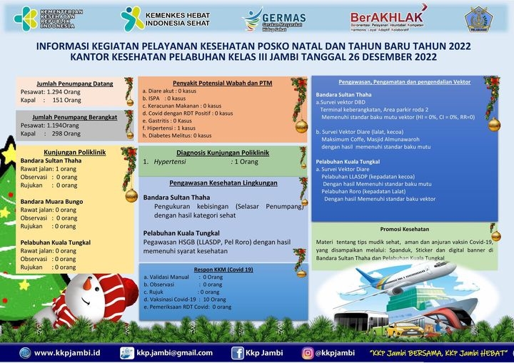 Kegiatan Pelayanan Kesehatan dalam rangka Posko Natal dan Tahun Baru, Kantor Kesehatan Pelabunan Kelas III Jambi tanggal 26 Desember 2022
