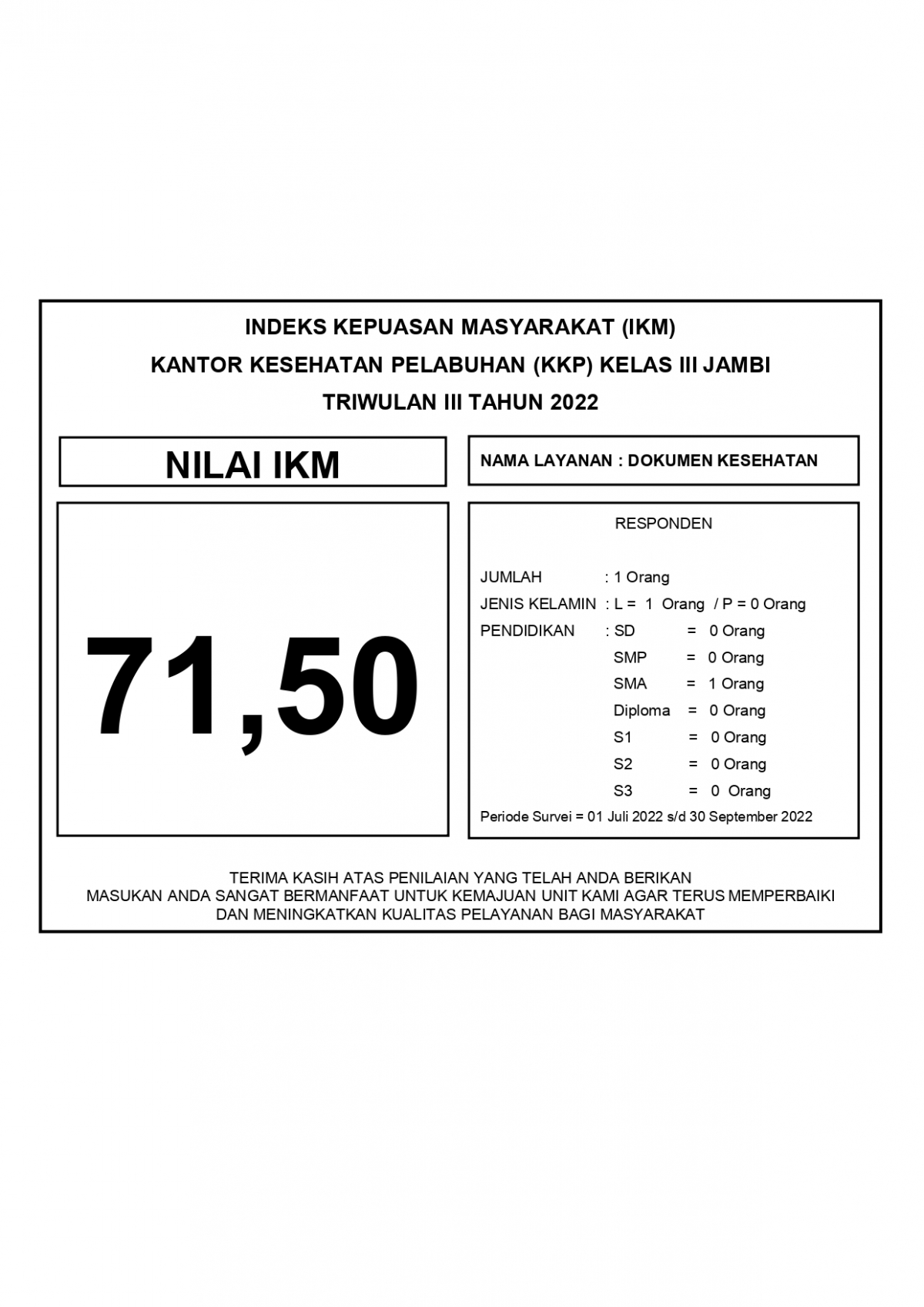 Hasil Survei Indeks Kepuasan Masyarakat (IKM) Triwulan 3