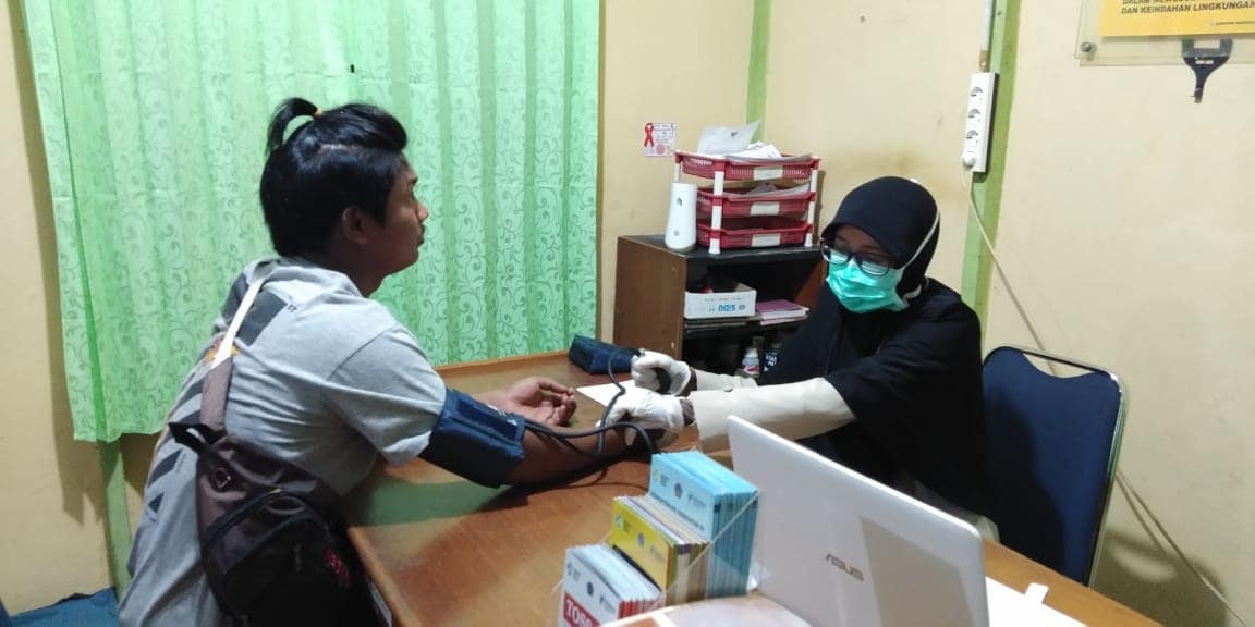 Malam ini (11/05/20) Petugas KKP Jambi untuk wilayah kerja Kuala Tungkal dibantu KSOP melakukan pemeriksaan Kesehatan Tim Kerja Bongkar Muat. Hasil pemeriksaan RDT Malaria, suhu dan tensi 18 orang yang akan melakukan bongkar muat di ambang luar pelabuhan Kuala Tungkal ini 17 dinyatakan sehat dan diperbolehkan untuk berangkat sedangkan satu orang lagi di sarankan untuk tidak berangkat disebabkan tensi saat pengukuran 200 mmHg.