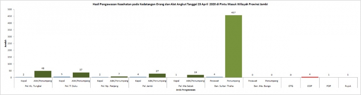Hasil Pengawasan Kesehatan Pada Kedatangan Orang dan Alat Angkut di Pintu Masuk Provinsi Jambi 23 April 2020