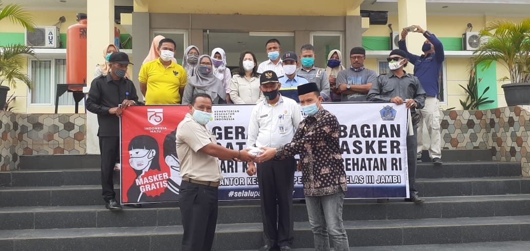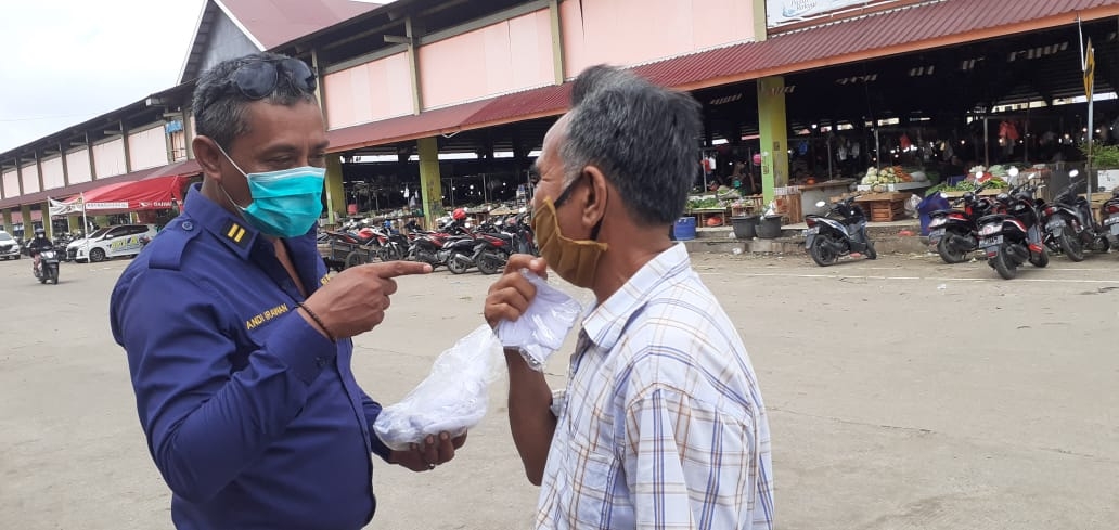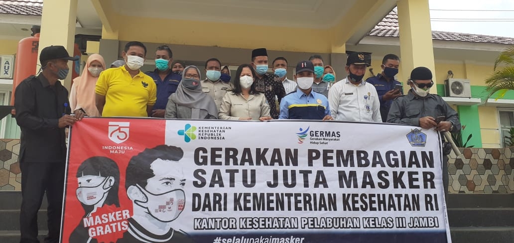 Dalam rangka mencegah penularan Covid19 di Wilayah Kerja Pelabuhan Laut Jambi , Petugas membagikan Masker kepada Masyarakat Sekitar Pelabuhan yaitu Pasar Angso Duo Kota Jambi