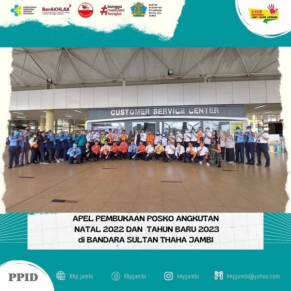 Senin, 19 Desember 2022 Apel Pembukaan Posko Angkutan Natal 2022 dan Tahun Baru 2023 Di Selasar SELASAR BANDARA SULTAN THAHA JAMBI bersama Seluruh Pimpinan dan jajaran Komunitas Bandara Sultan Thaha Jambi.
