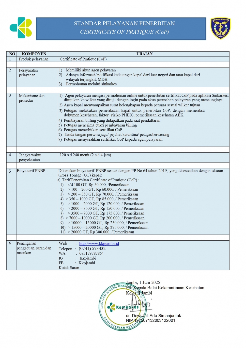 Certificate of Pratique (CoP)