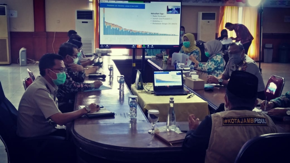 Hari ini (Kamis, 16/04/20) Gugus Tugas Penanggulangan Covid-19 Kota Jambi melakukan Rapat terbatas dalam rangka tracking kontak dengan pasien 01 Covid-19 kota Jambi, Dipimpin Wakil Walikota Jambi, DR dr H. Maulana, MKM. dihadiri Kepala KKP Kelas III Jambi (Ali Isha Wardhana, SKM, MKM), Asisten 3 , Kadis kesehatan Kota Jambi, Kabag Ops Polresta , Camat Paal Merah beserta Lurah Eka Jaya, Kamis 6 April 2020 Pukul 10.00 WIB s.d. selesai, bertempat di Posko Gugus Tugas Covid 19 Kota Jambi, Mako Damkar.