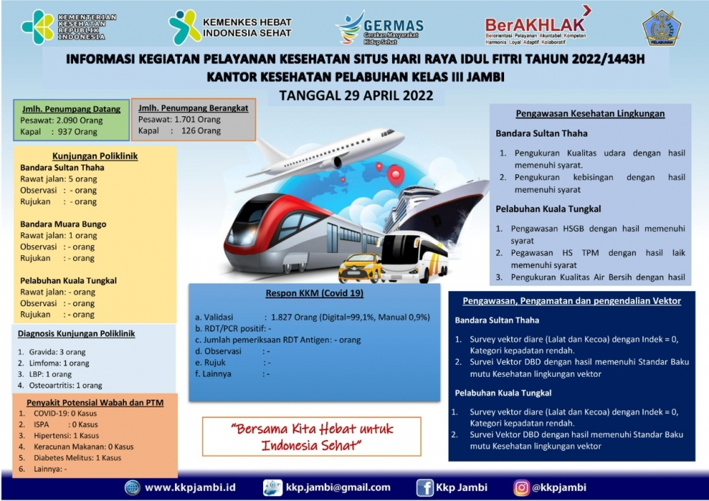 Informasi Grafis Pelayanan Kesehatan Situs Hari Raya Idul Fitri tahun 2022/1443 H, Kantor Kesehatan Pelabuhan Kelas III Jambi