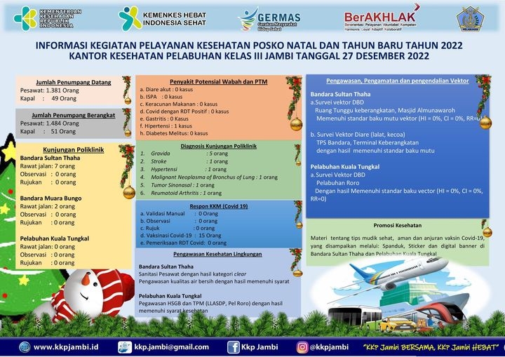 Kegiatan Pelayanan Kesehatan dalam rangka Posko Natal dan Tahun Baru, Kantor Kesehatan Pelabunan Kelas III Jambi tanggal 27 Desember 2022