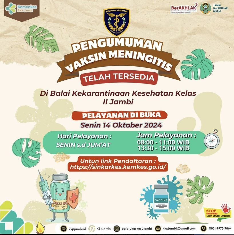 Mulai Senin 14 Oktober 2024 Vaksinasi Meningitis Sudah Tersedia Kembali yaa, silahkan Segera Mendaftar untuk Mendapatkan Pelayanan, bisa Melalui link :