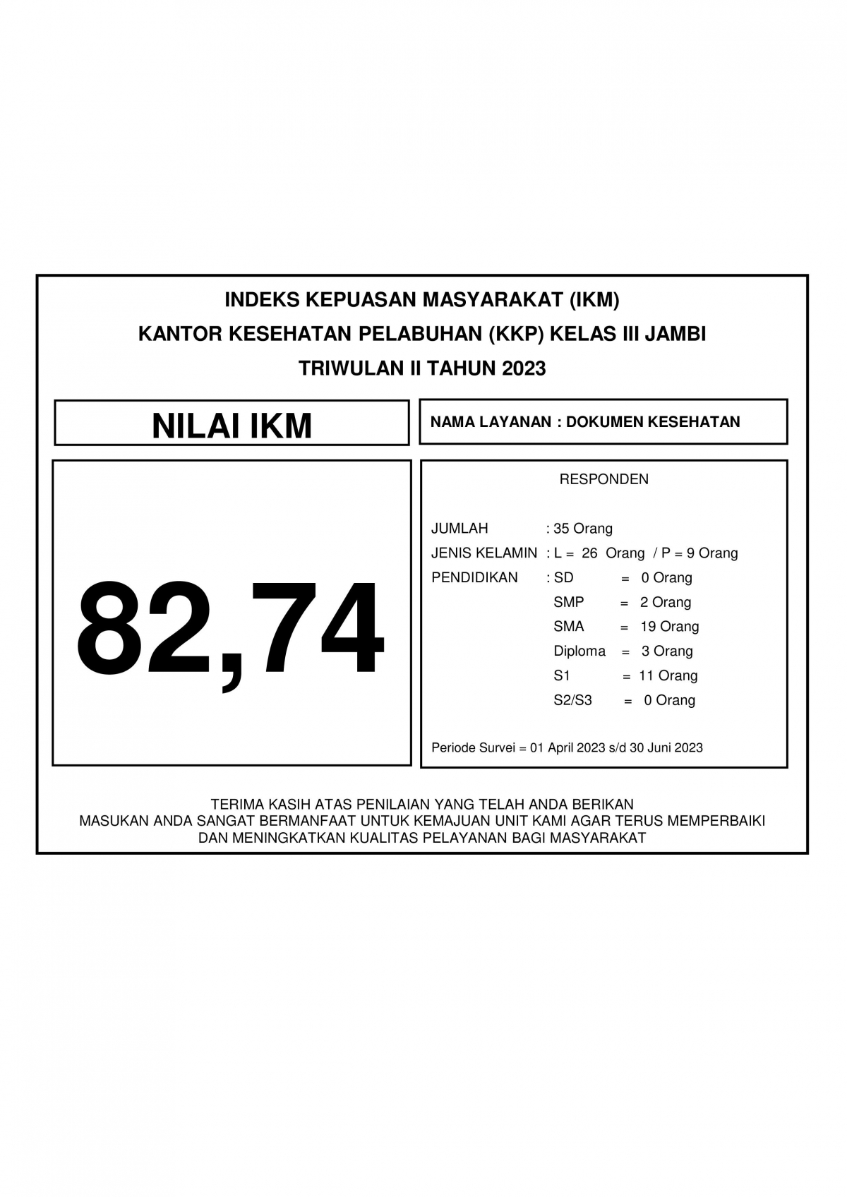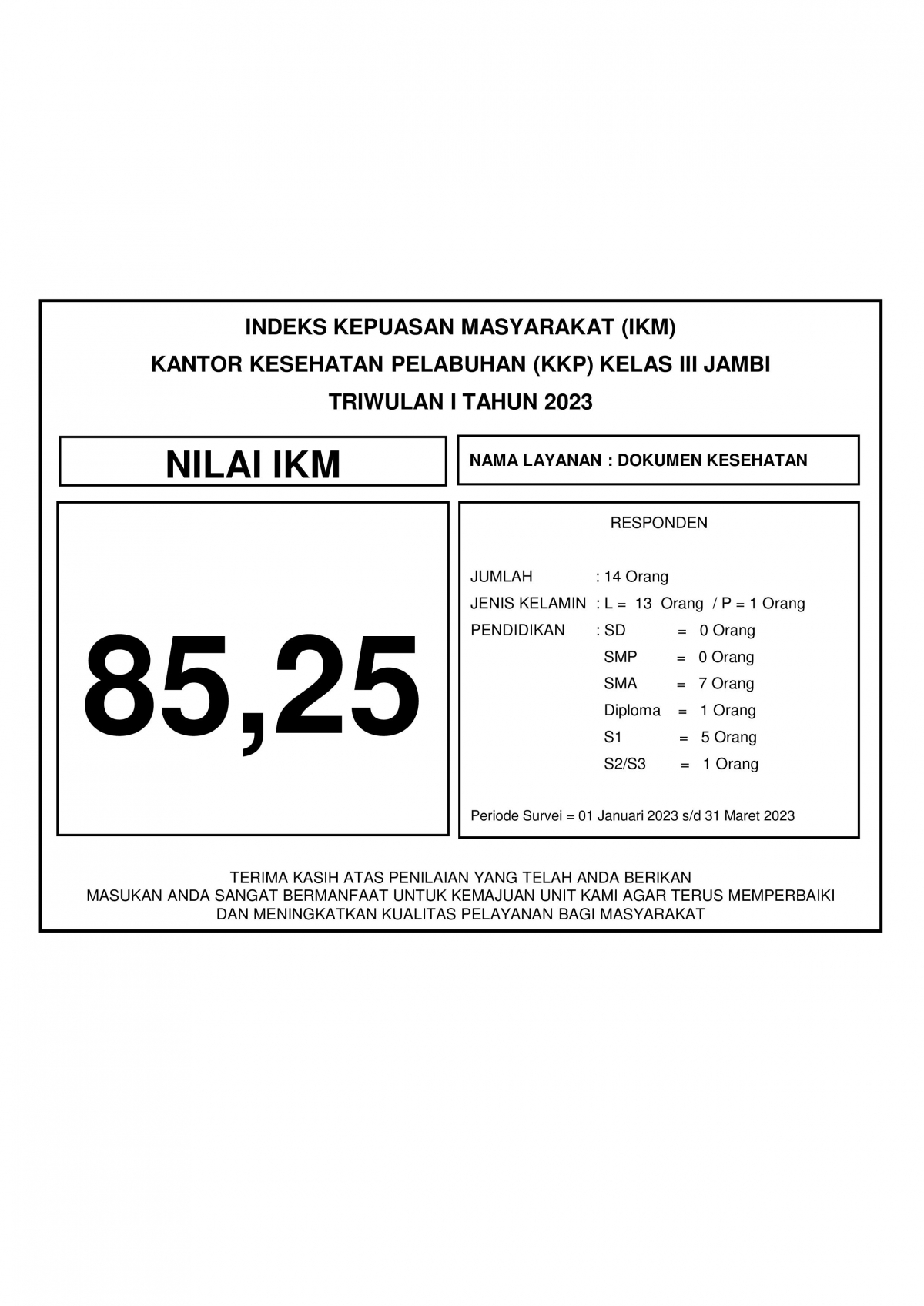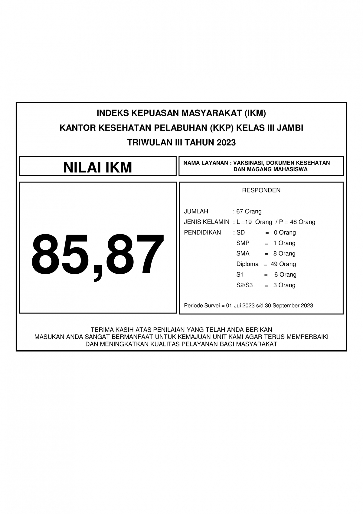 Index Kepuasan Masyarakat (IKM) 2023