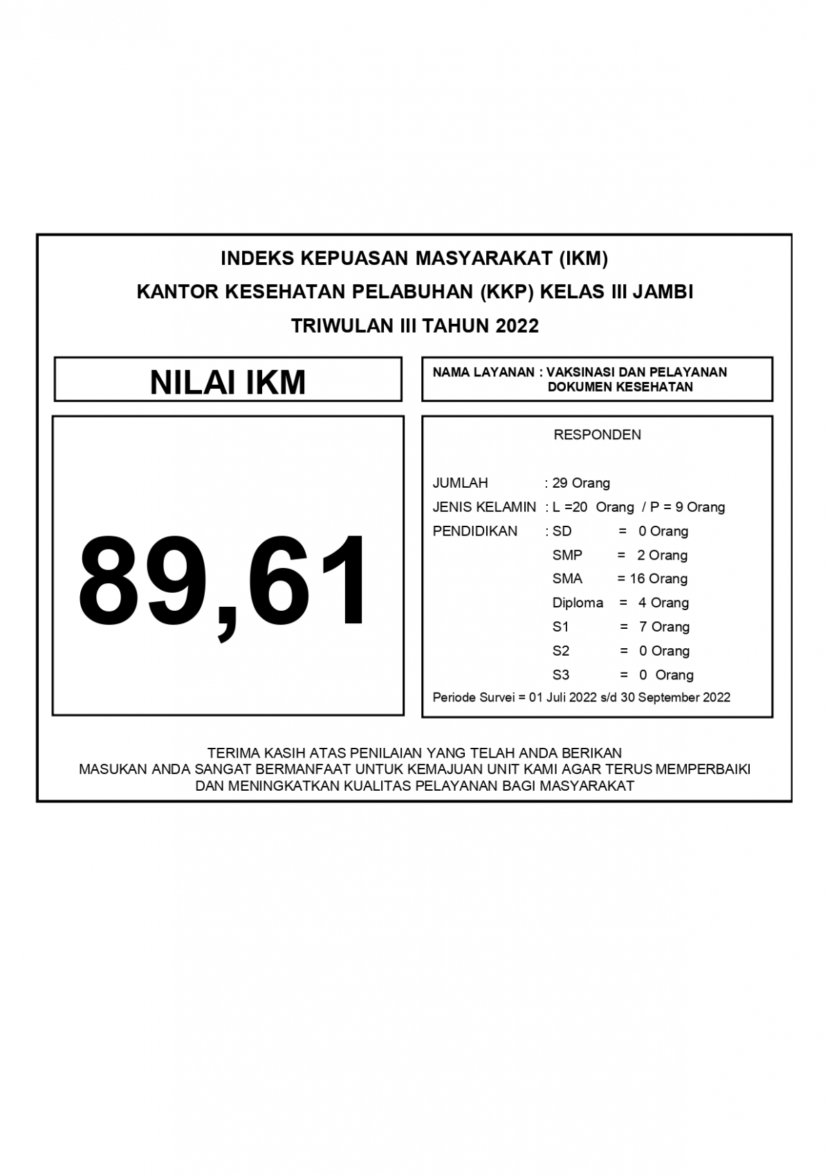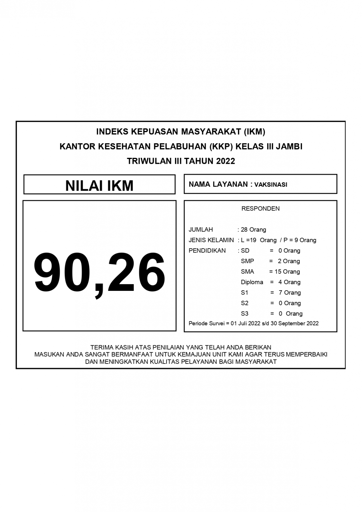 Hasil Survei Indeks Kepuasan Masyarakat (IKM) Triwulan 3
