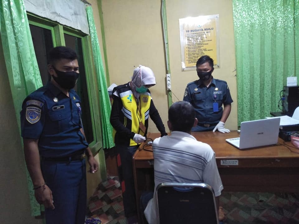 Malam ini (11/05/20) Petugas KKP Jambi untuk wilayah kerja Kuala Tungkal dibantu KSOP melakukan pemeriksaan Kesehatan Tim Kerja Bongkar Muat. Hasil pemeriksaan RDT Malaria, suhu dan tensi 18 orang yang akan melakukan bongkar muat di ambang luar pelabuhan Kuala Tungkal ini 17 dinyatakan sehat dan diperbolehkan untuk berangkat sedangkan satu orang lagi di sarankan untuk tidak berangkat disebabkan tensi saat pengukuran 200 mmHg.