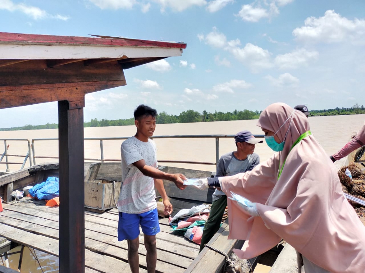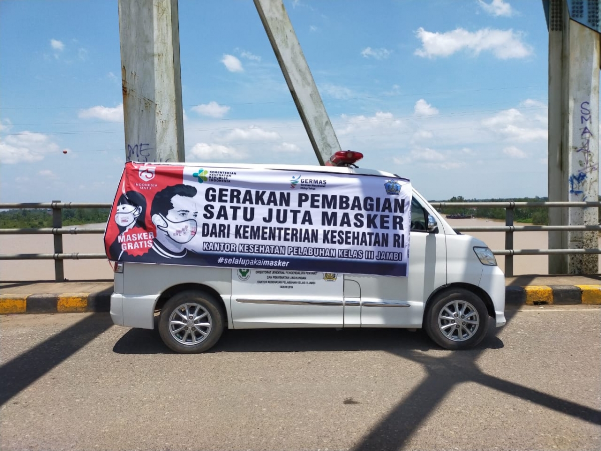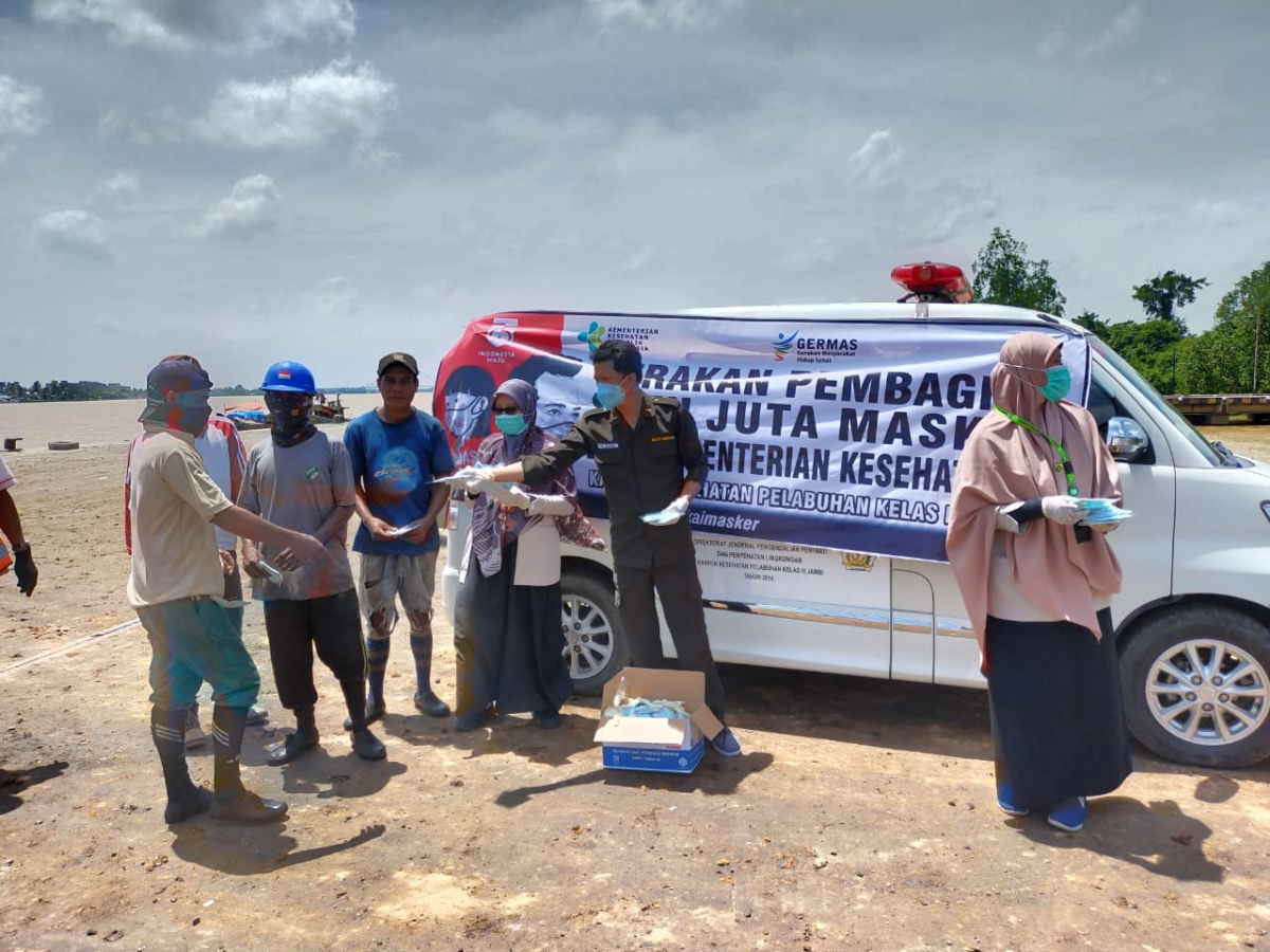 Gerakan Pembagian Satu Juga Masker Kementerian Kesehatan KKP Kelas III Jambi melalui Wilker Muara Sabak.
