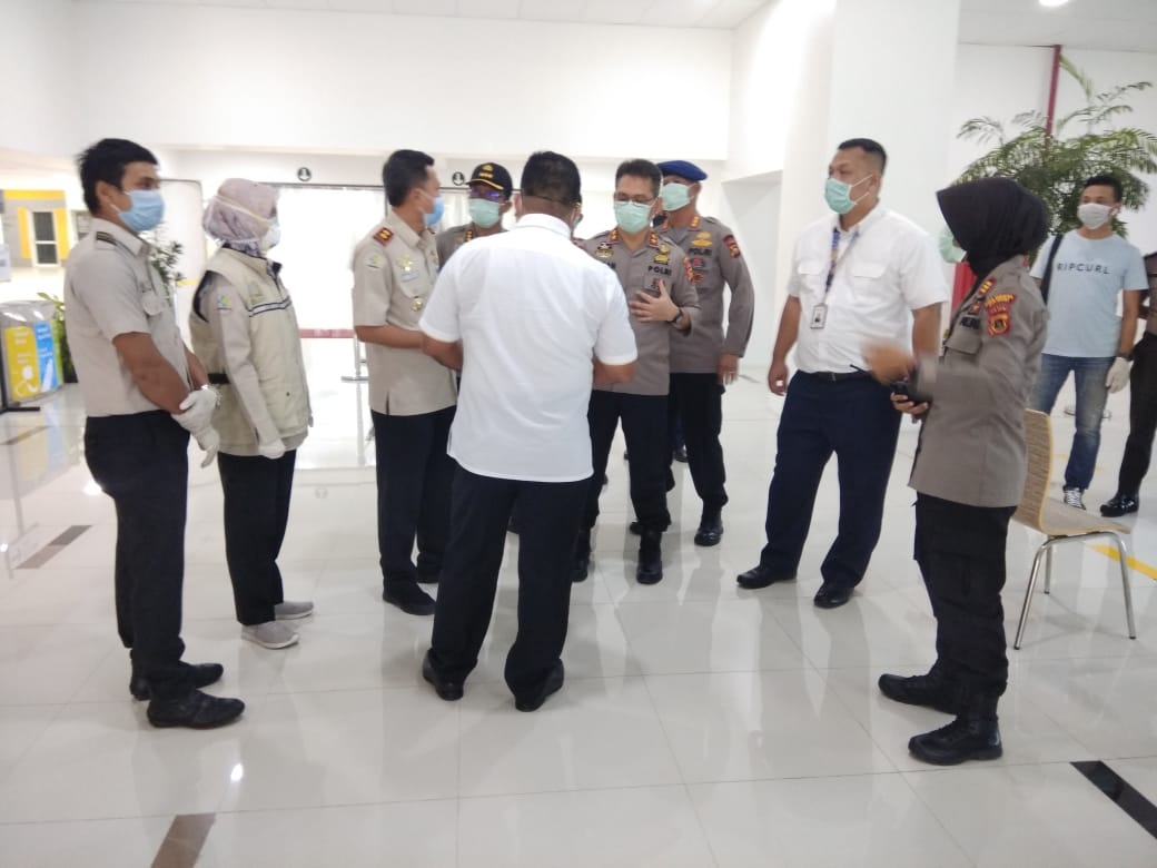 Koordinasi KKP Kelas III Jambi bersama Stake Holder yaitu EGM Angkasa pura II Jambi, Kapolda Jambi dan jajaran Polsek Jambi Selatan dalam rangka kunjungan gubernur provinsi jambi untuk melihat kesiapan terhadap COVID-19 di Bandara Sultan Thaha jambi (30 Maret 2020).