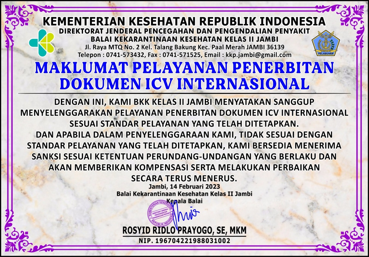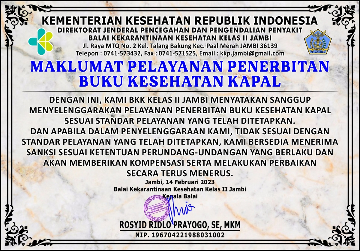 MAKLUMAT PELAYANAN PADA KANTOR KESEHATAN PELABUHAN KELAS III JAMBI