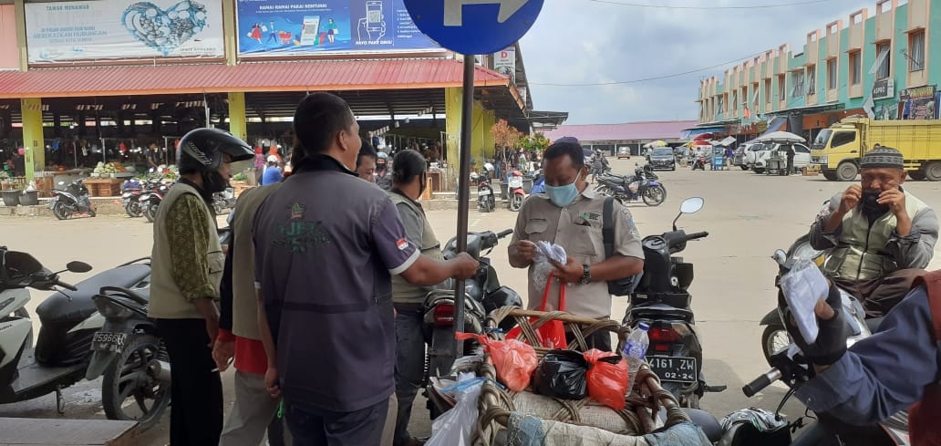 Dalam rangka mencegah penularan Covid19 di Wilayah Kerja Pelabuhan Laut Jambi , Petugas membagikan Masker kepada Masyarakat Sekitar Pelabuhan yaitu Pasar Angso Duo Kota Jambi