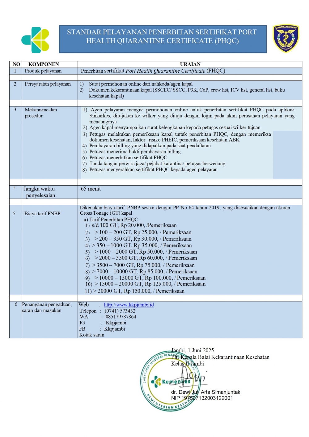 Sertifikat Port Health Quarantine Certificate (PHQC)